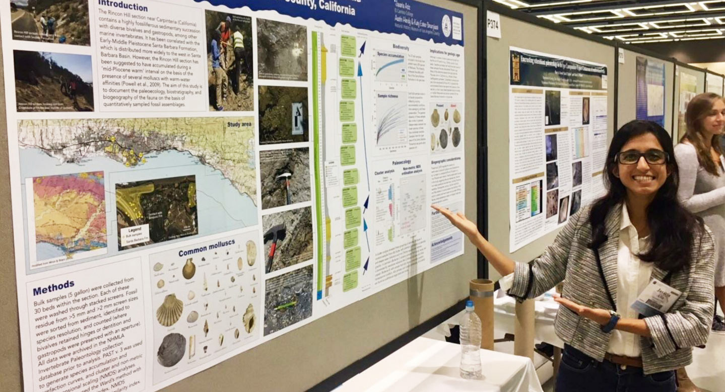 In addition, Javaria was selected by the Paleontological Society, an international organization of several thousand paleontologists, to be one the group's first "Student Ambassadors." She received a scholarship from the Paleontological Society that fully funded her attendance at the conference and was the first student from El Camino College in about 15 years to present at a Geological Society of America meeting.
