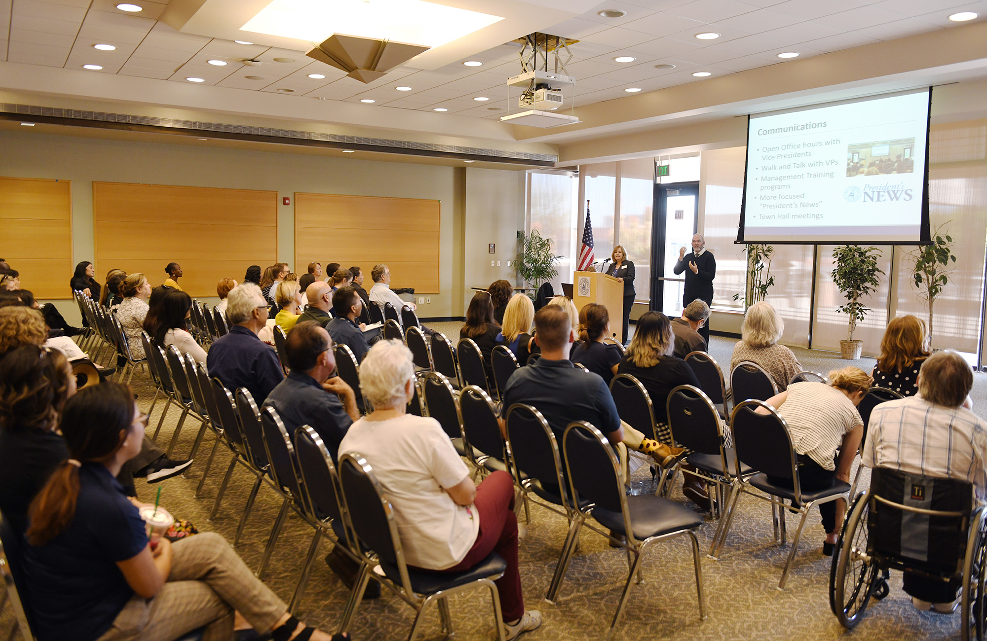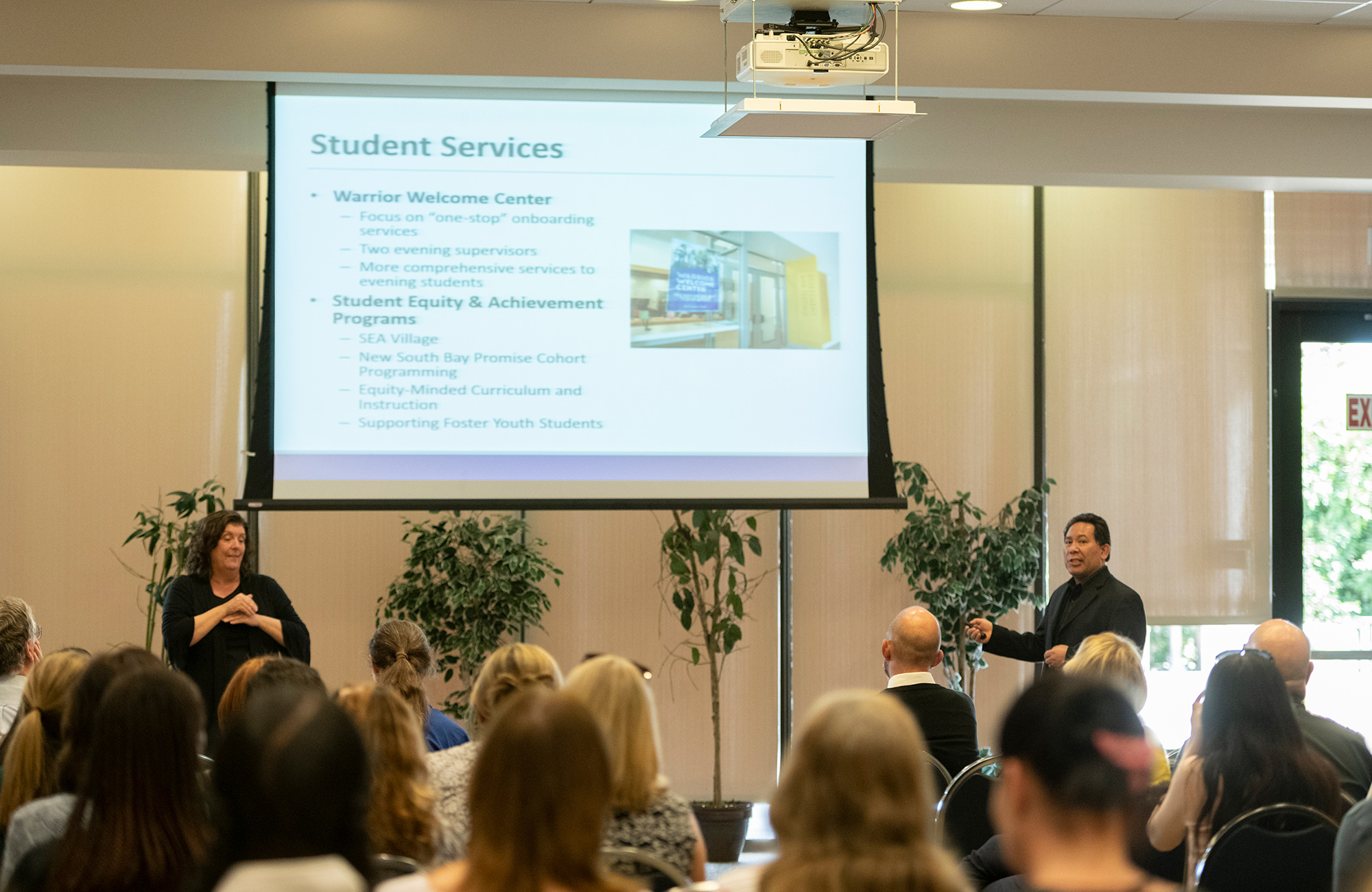 The college community recently gathered to learn about exciting developments taking place at El Camino College during our Fall 2019 Town Hall meeting. Topics included climate survey concerns, progress of the Warrior Welcome Center and Evening College, as well as an update on our facilities projects. Refreshments and a raffle concluded the event.
