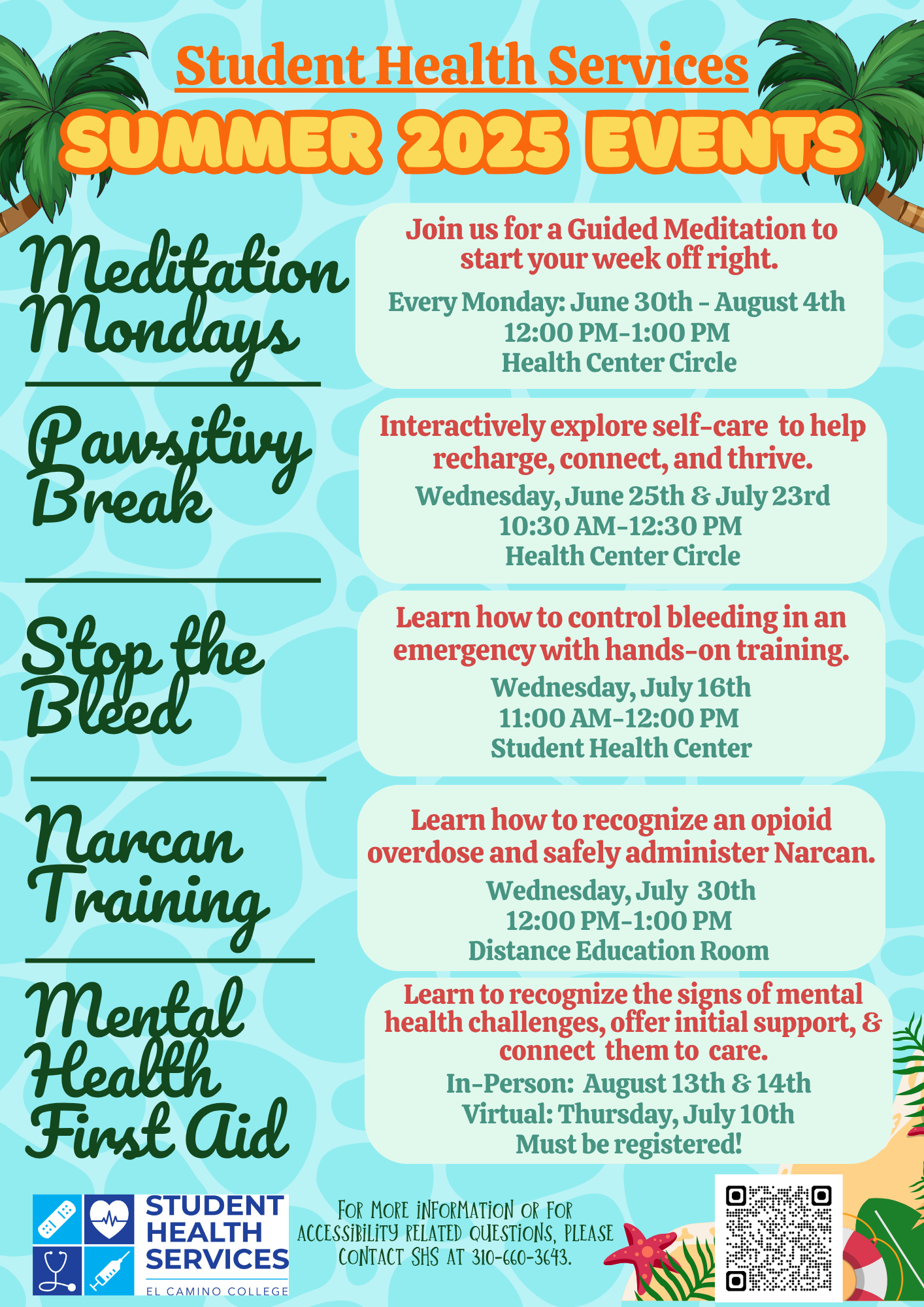 El Camino students can access a variety of health/wellness workshops and training opportunities throughout the semester for FREE!!
